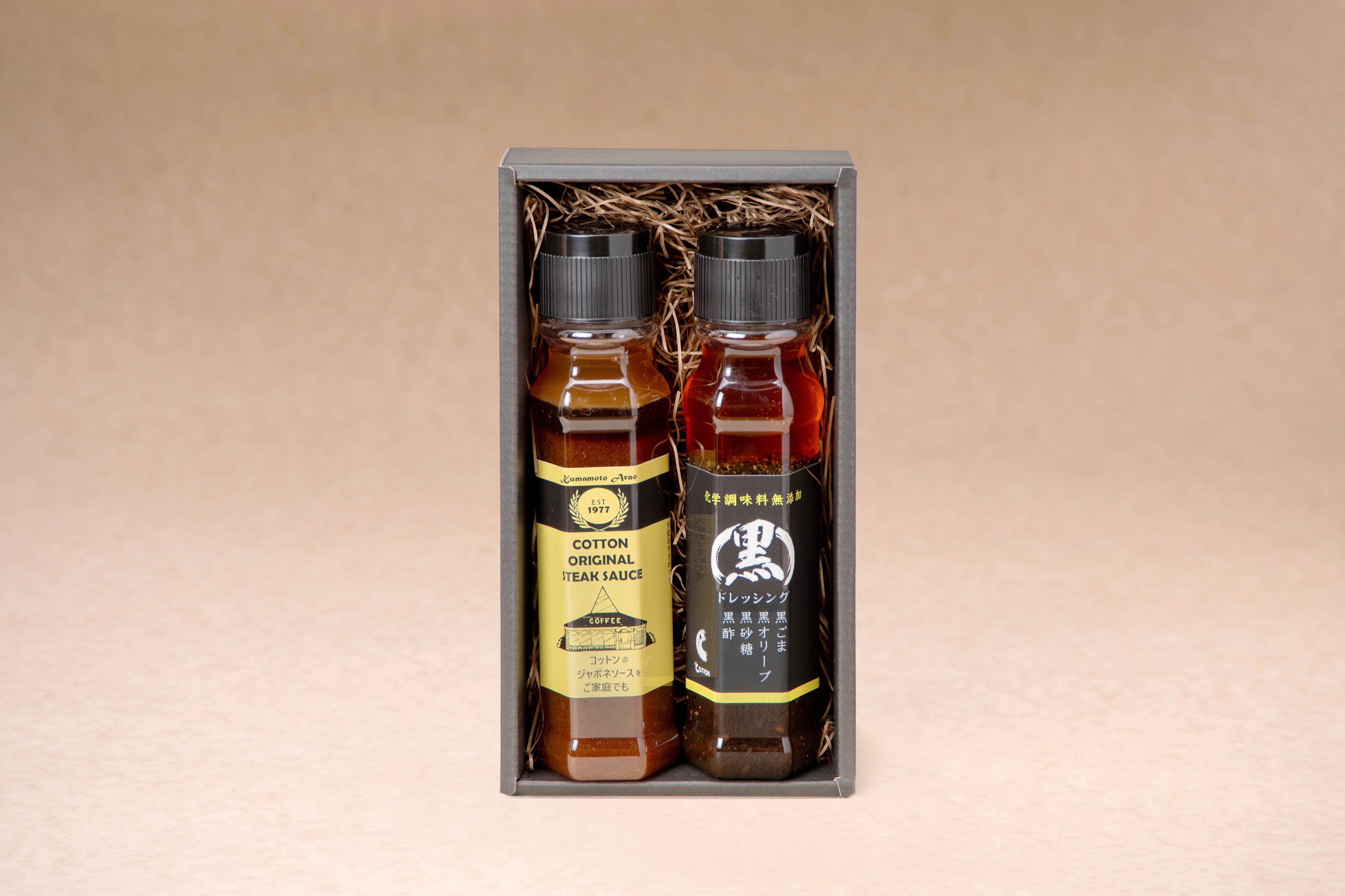 黒の旨みを極めた《黒ドレッシング》と、お肉料理を引き立てる《万能和風ソース》の贅沢セット。